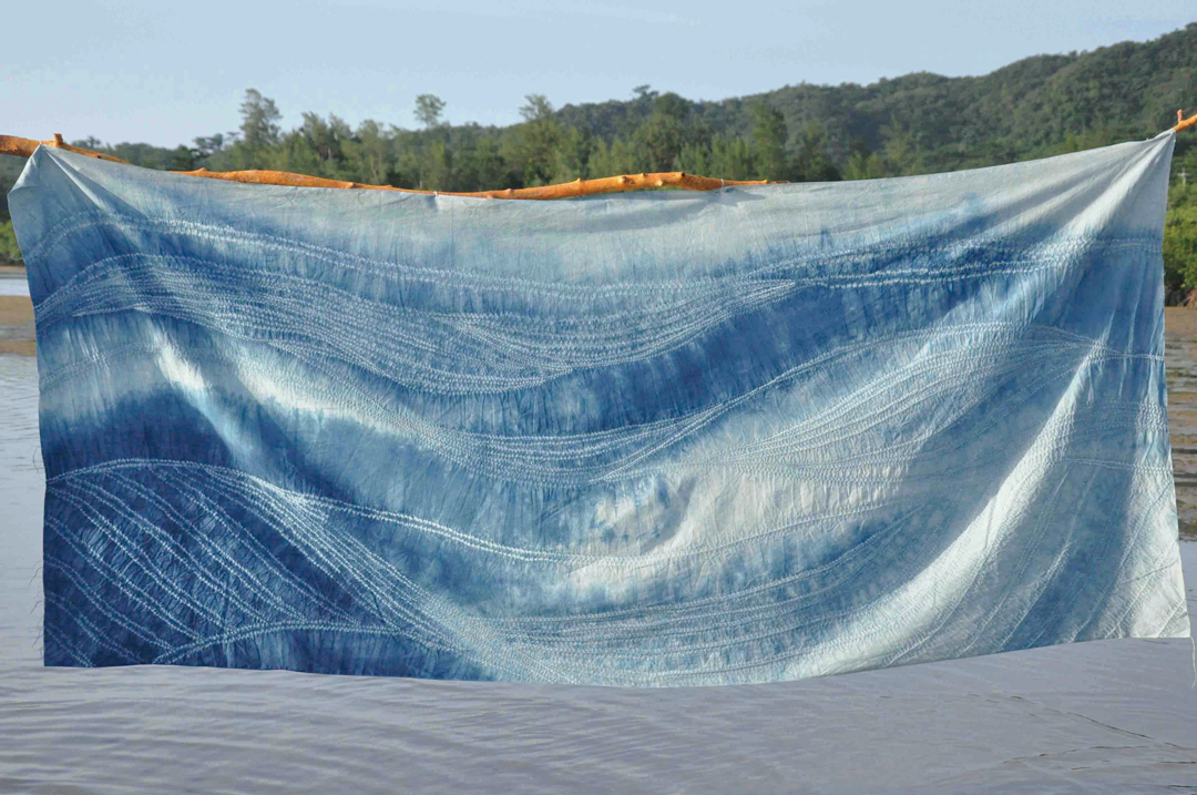 春告流水文図 2015 藍・植物染料・綿 91×91cm