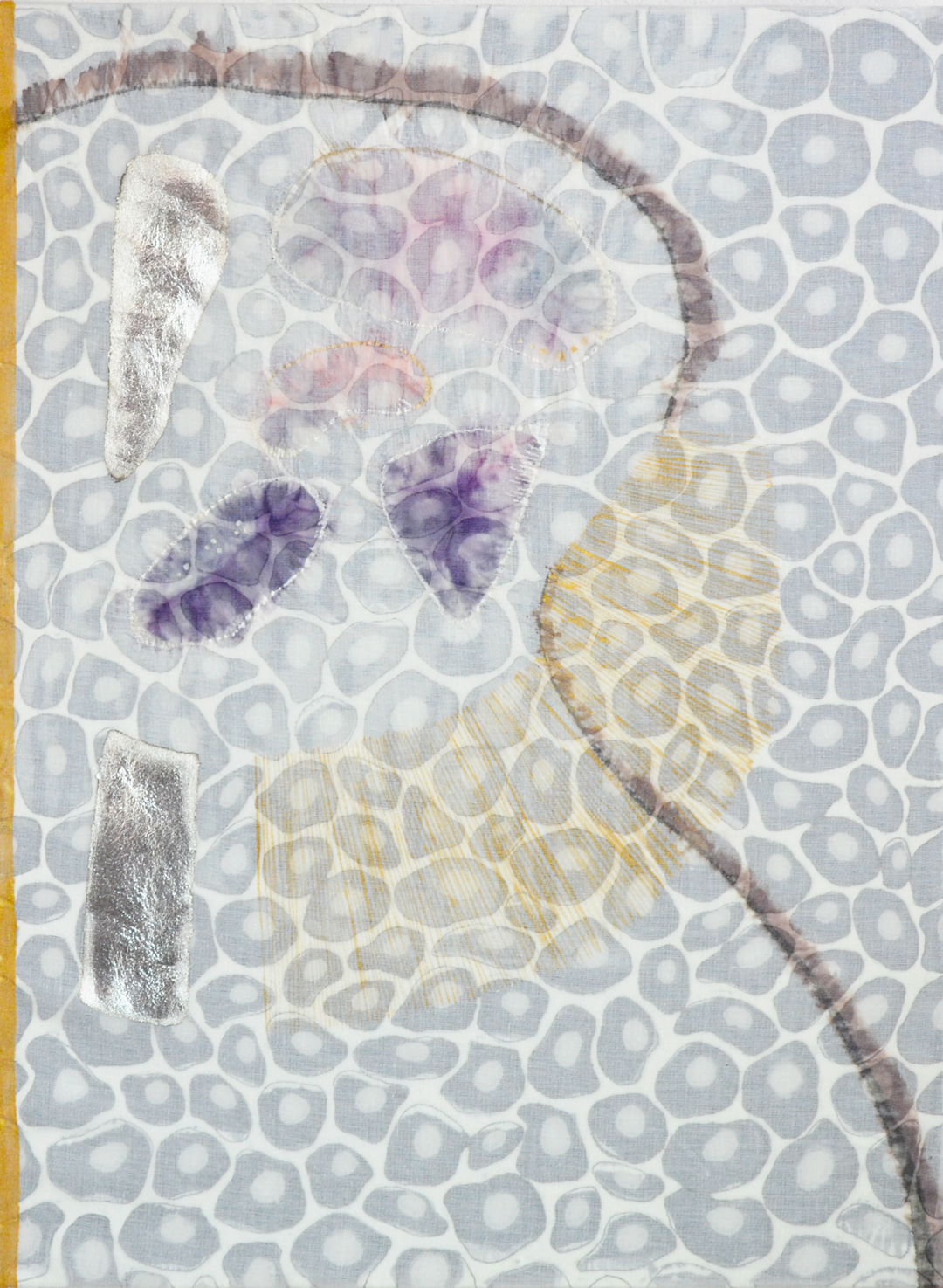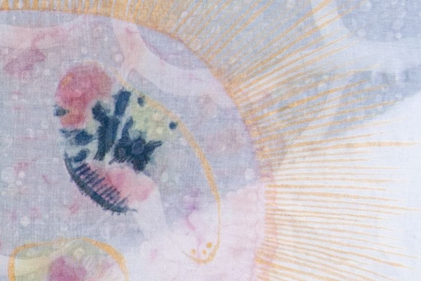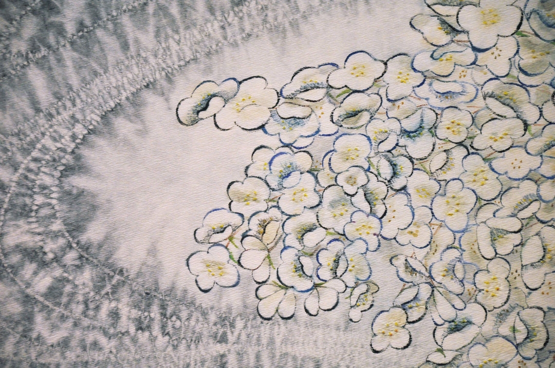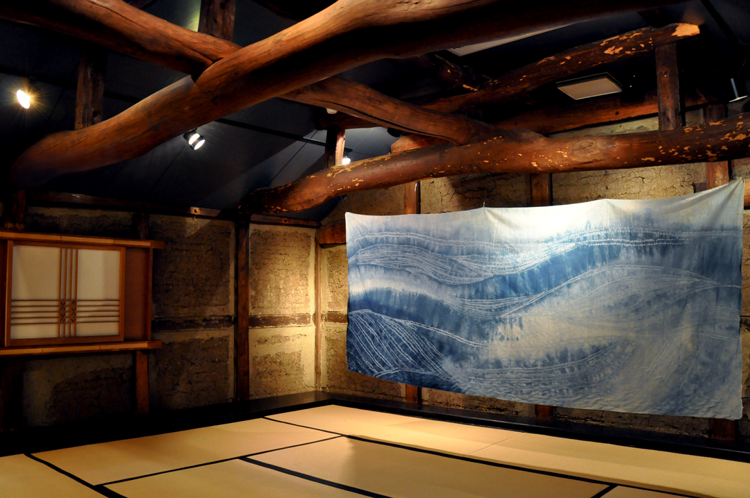 "herald the arrival of spring(haru-tsugeru-ryusuimon-zu)" indigo, natural dye on cotton