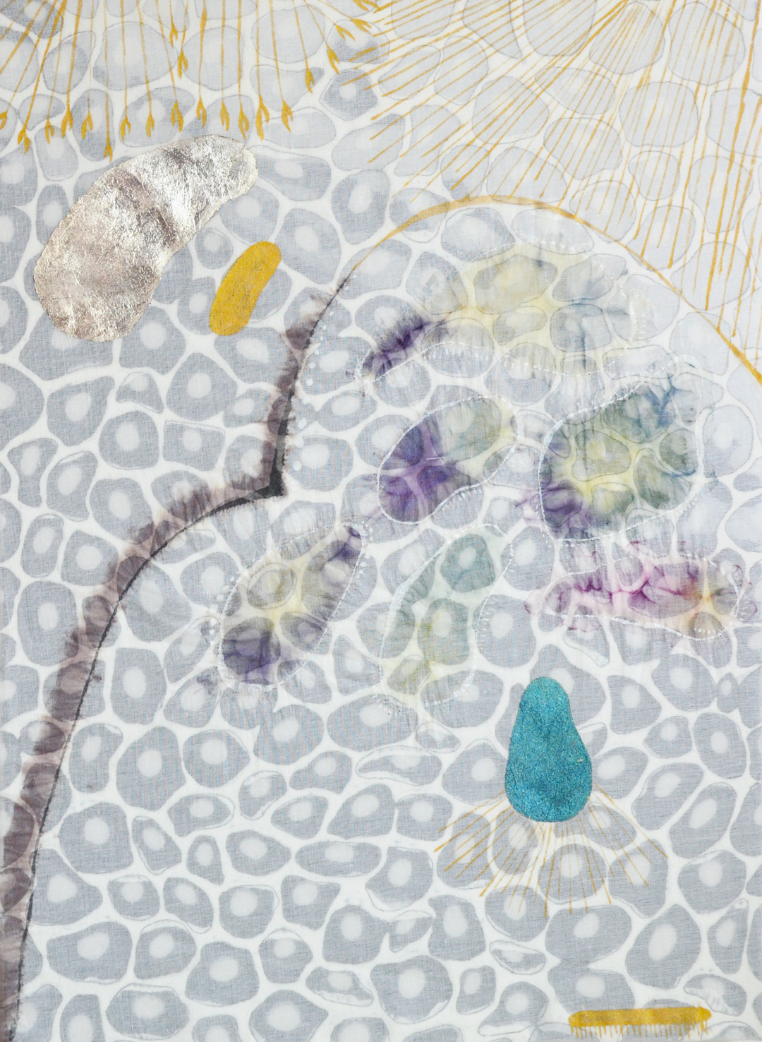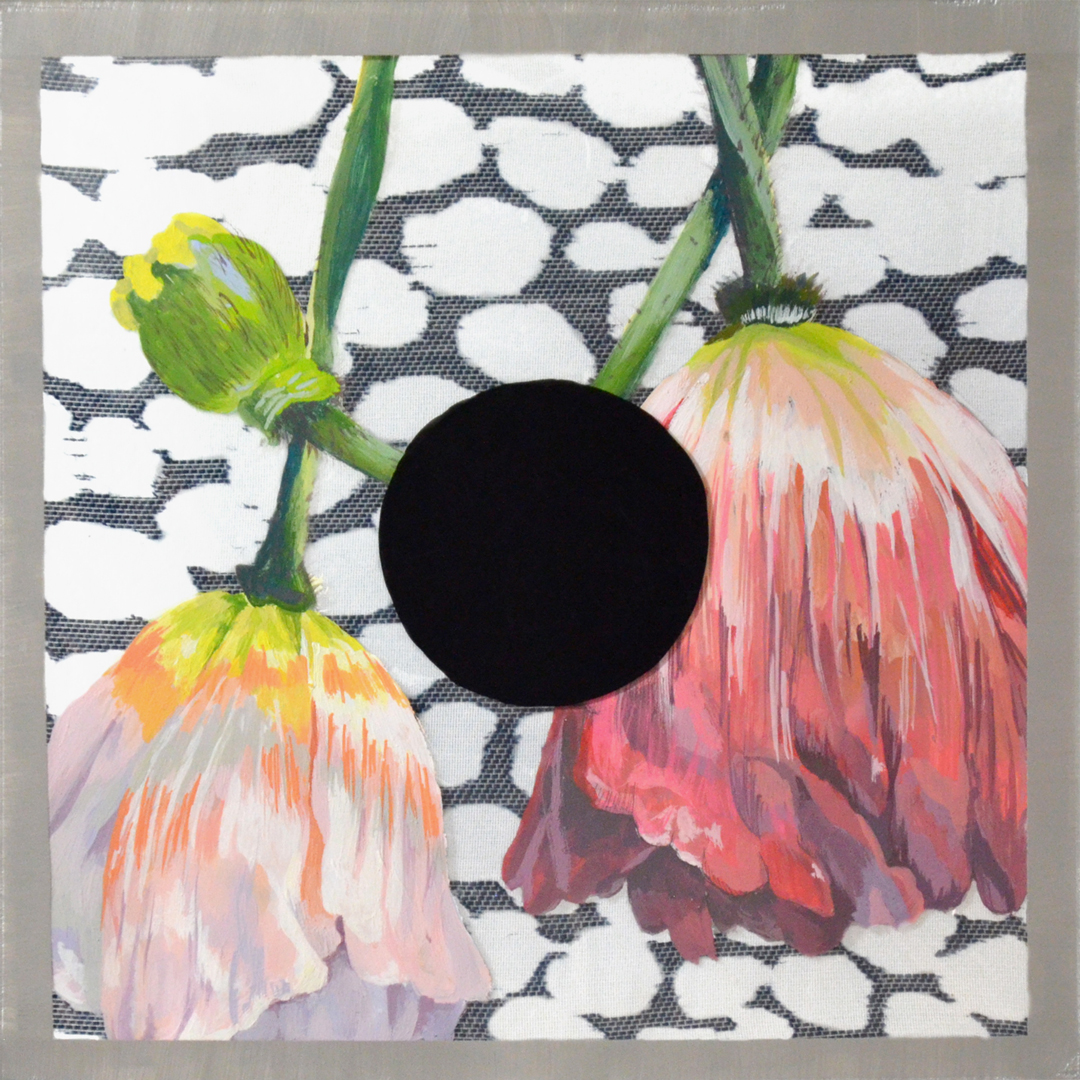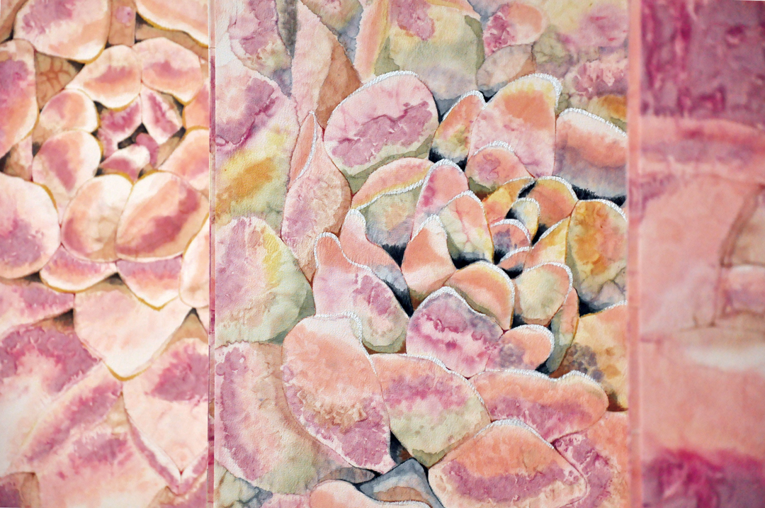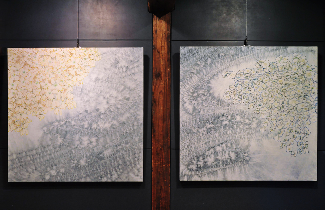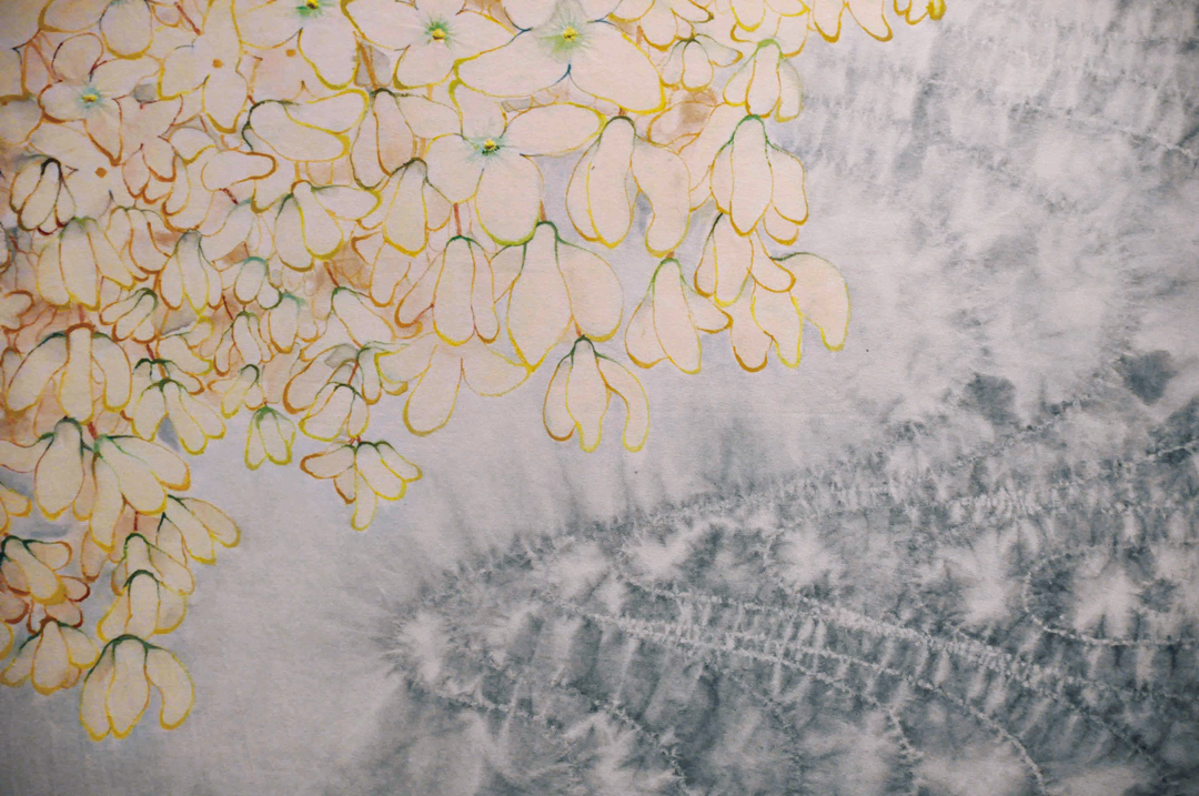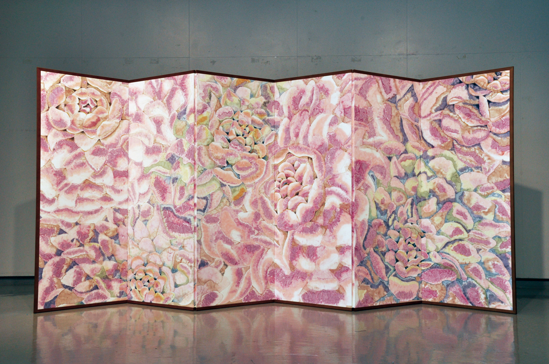 花盛図屏風 2016 植物染料・顔料・絹 150×360cm(六曲半双)
